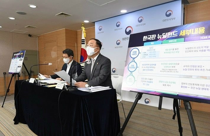이날 홍남기 경제부총리 겸 기획재정부 장관은 관련 브리핑을 통해 "재정자금이 후순위 출자를 통해 투자 리스크를 우선적으로 부담해 주는 정책형 뉴딜펀드를 신설한다"며 "파격적인 세제지원을 통하여 뉴딜 인프라 프로젝트에 집중 투자를 유도하는 뉴딜 인프라펀드를 육성할 것"이라고 밝혔다.