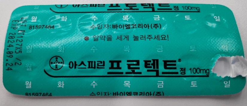 빈속에 먹지 말랬지만 이 아스피린 프로텍트는 코팅을 잘해서 빈속에 물많이 해서 먹으라고 했지만 그래도 매일마다 식후에 한알씩 먹어볼 예정이다.