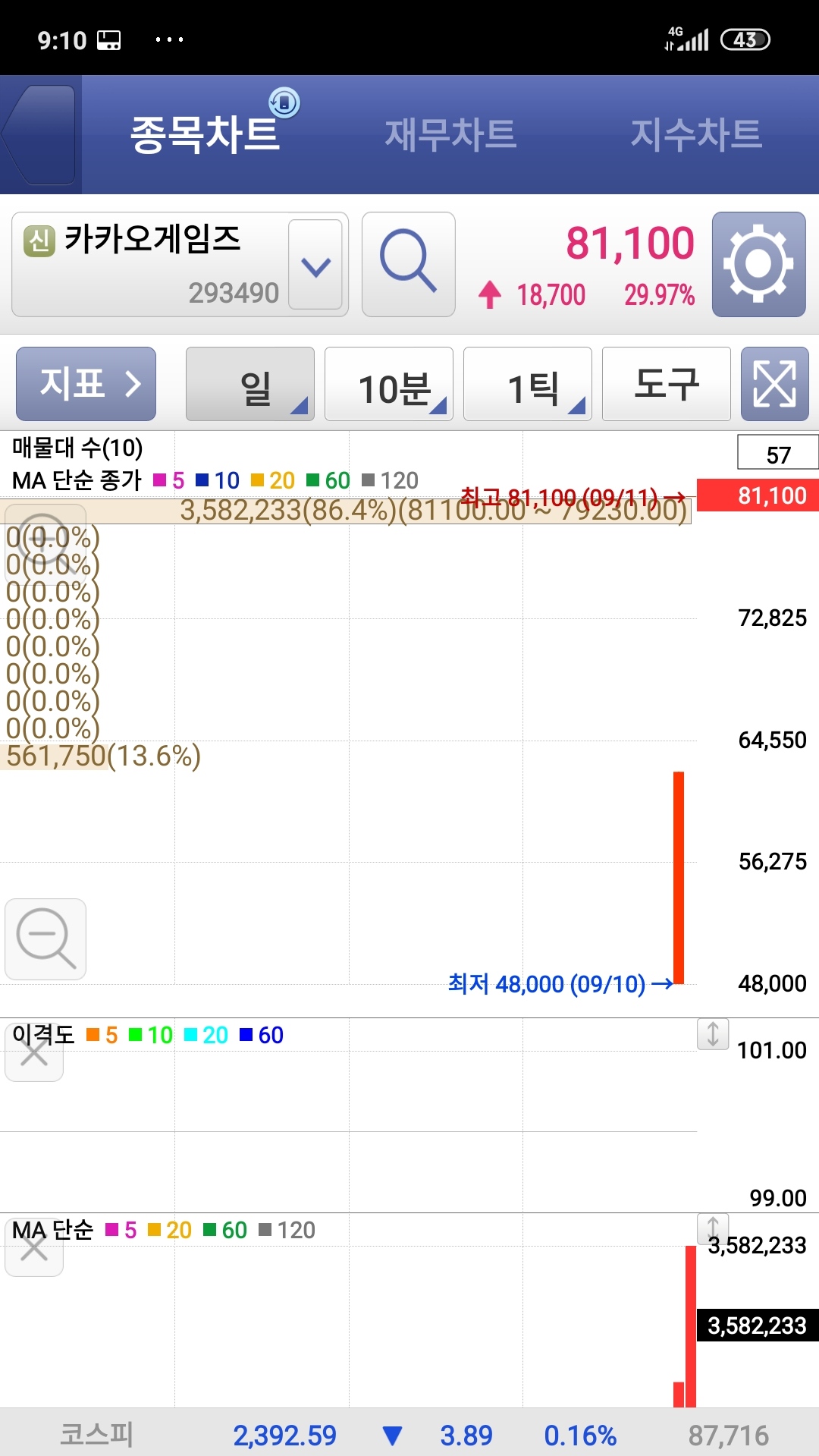 거래량과 매수잔량만 놓고 보면 카카오게임즈가 다시 상한가를 갈 가능성은 있다.