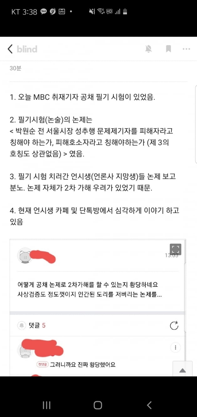 [단독]'박원순 고소인은 피해자인가'…MBC 입사시험 '2차가해' 논란, 이태훈 기자, 사회