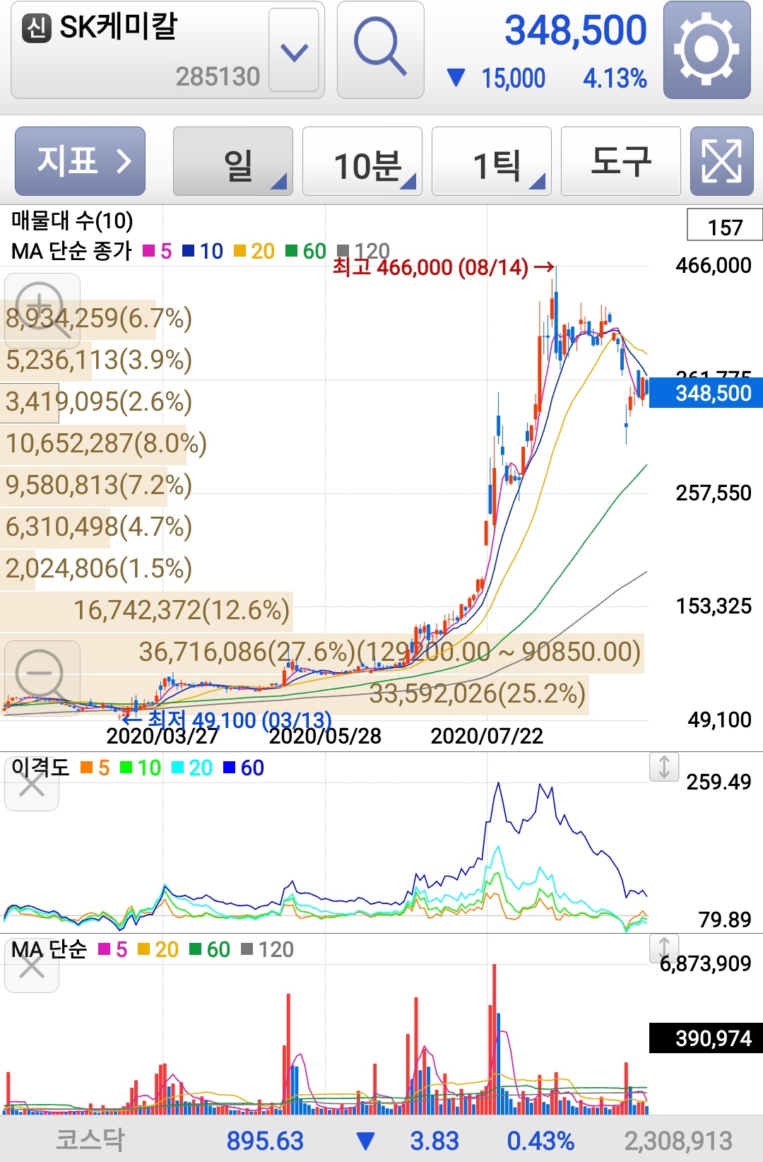 SK케미칼은 아스트라제네카 임상실험 3상 중단 문제로 떨어진 것 같다.