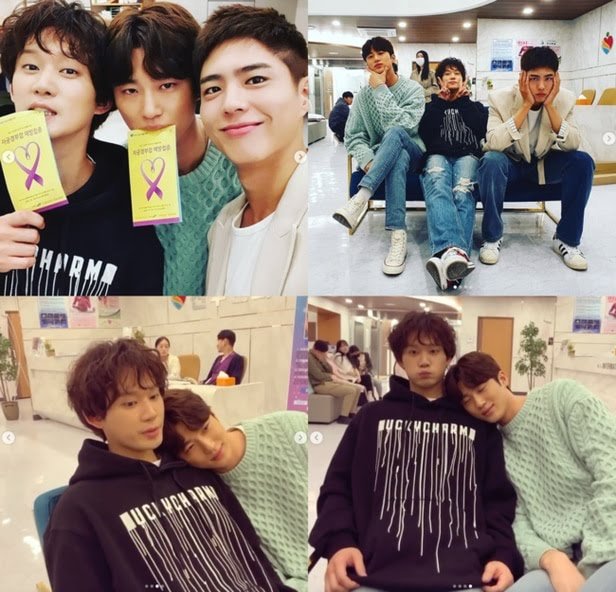사진에서 권수현은 변우석, 박보검과 나란히 앉아 산부인과 진료 촬영을 기다리고 있다. 변우석은 권수현에게 기대어 멍뭉미를 발산하고 있다. 군대에 간 박보검의 얼굴도 반갑다.