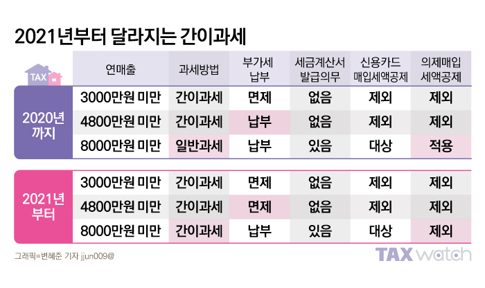 연매출이 4800만원 미만인 간이과세자는 내년부터 부가세 납부의무 자체가 면제된다.