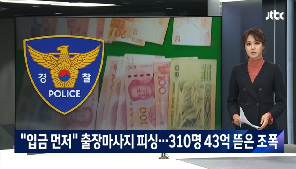 "입금 먼저" 출장마사지 피싱…310명 43억 뜯은 조폭