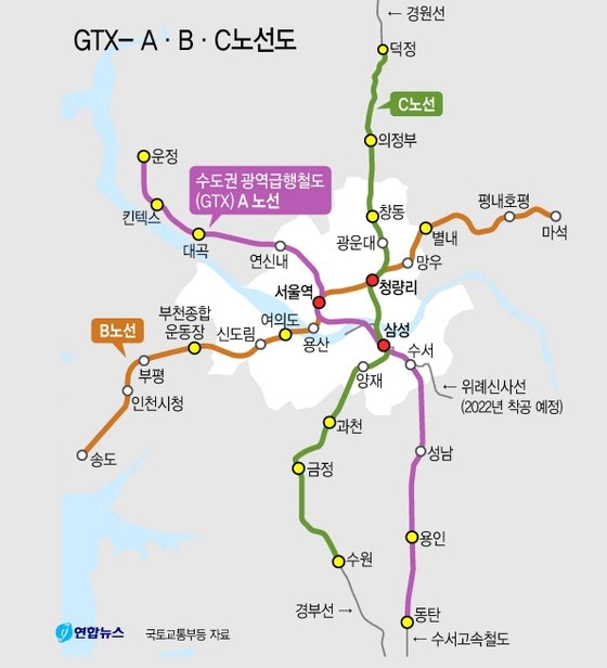 GTX 노선도. 연합뉴스