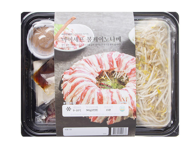 초보자도 솜씨를 발휘할 수 있는 마이셰프 밀키트, 그중에서도 볼케이노 나베를 소개합니다. 숙주 위에 고기가 풍성하게 올라간 모양이 마치 화산과도 같아 볼케이노 나베라는 이름이 붙었어요. 전골냄비에 숙주를 동그랗게 모양내어 담은 다음 고기를 올려주세요. 그리고 사골 농축액 베이스를 부어 팔팔 끓여주면 깊고 진한 맛의 국물을 맛볼 수 있답니다. 거기에 정통 일식 미소된장을 잘 풀어주면 구수한 맛이 더해져 더욱 풍성한 맛이 나죠. 나베요리에 빠질 수 없는 우동면도 함께 들어있으니 놓치지 마세요. 아삭아삭한 숙주와 쫄깃한 고기를 유자폰즈소스에 콕 찍어서 드셔 보세요. 유자폰즈소스가 산뜻한 맛을 내며 느끼함을 날려줄 거예요. 요리에 꼭 필요한 재료로 구성되어 남는 것이 없어 깔끔하고, 레시피 카드가 있어 누구나 손쉽게 요리할 수 있어요.