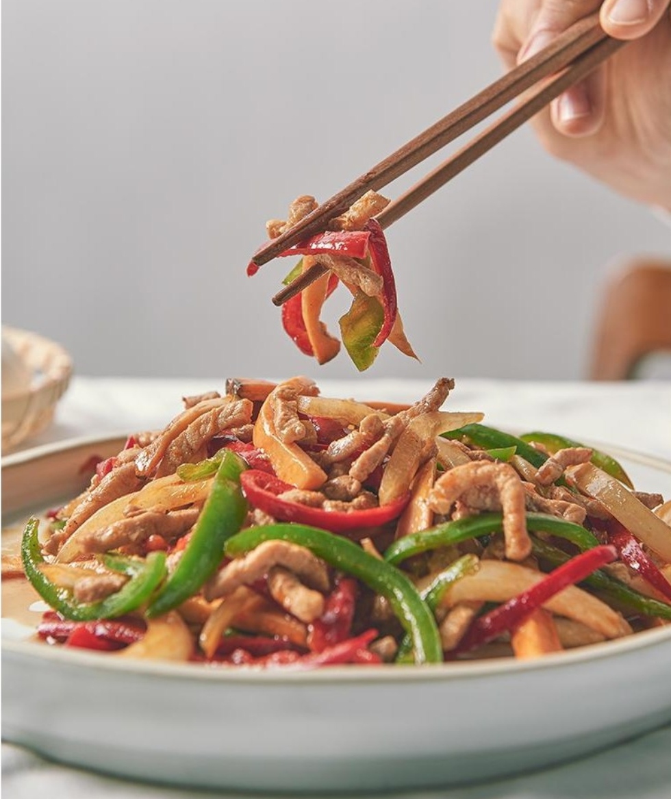 [오늘의 밀키트] 식스레시피 고추잡채 쿠킹박스 밀키트(2인분) 762g 고기, 야채, 고추기름, 꽃빵 등 그냥 15분 조리 뚝딱 후라이팬 볶고, 꽃빵 전자렌지 순식간 조리 특제소스 무배