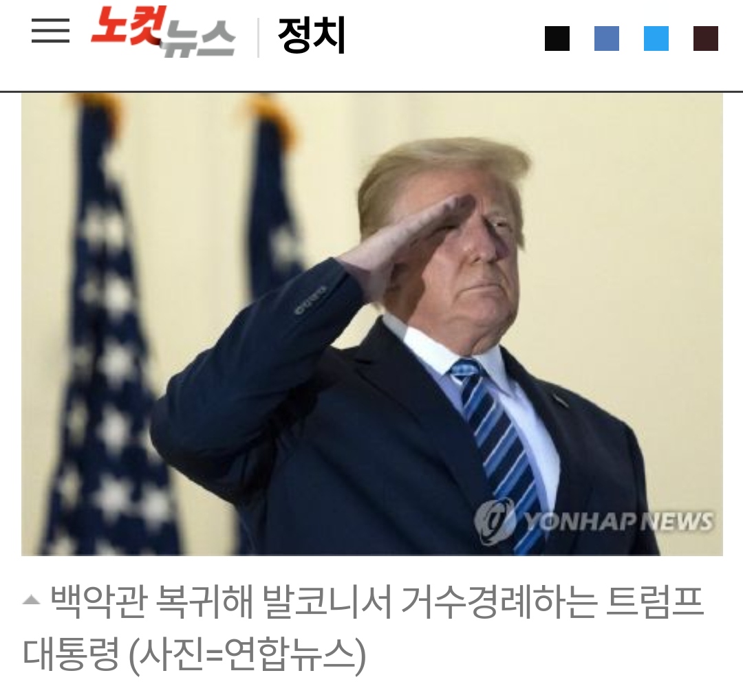 ◇ 김현정> 확진 판정이 난 지 사흘 만인 어제 퇴원을 했습니다. 그런데 퇴원하고 나서 백악관에서 처음 한 행동이 뭔지 아세요? 마스크를 벗었습니다. 이렇게 차에서 내리면서 백악관 기자들 앞에 서자마자 마스크를 벗었습니다. 조심해서 벗은 것도 아니고 아주 확, 쿨하게. (웃음)