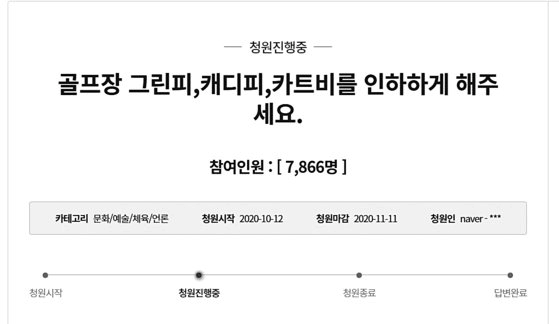 골프장 갑질을 고발한 국민청원 글에 골퍼들의 동참이 이어지고 있다. [사진 청와대]