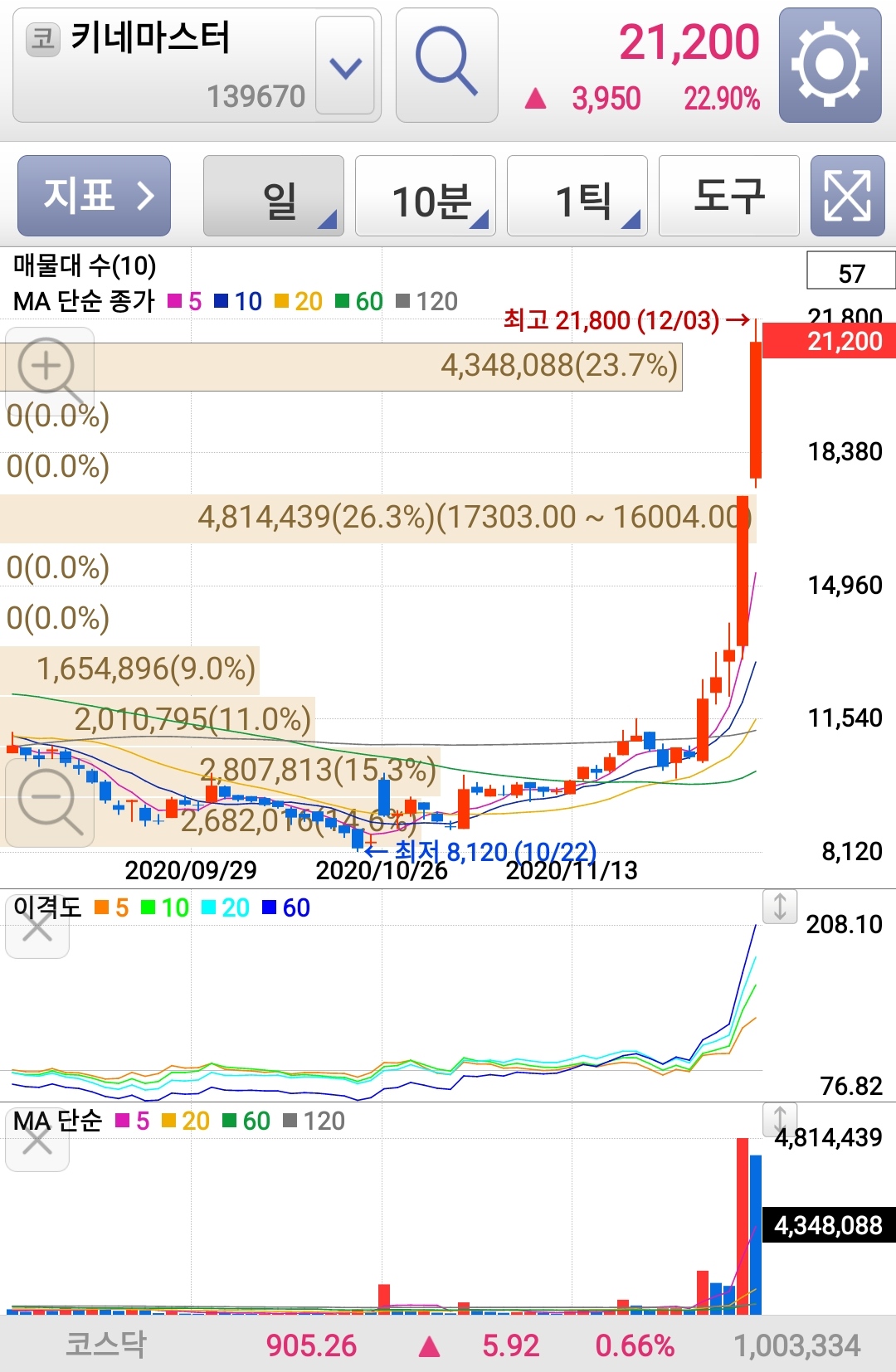 이미 몇차례 사고 팔기를 하면서 지켜보아오다가 심상치않아서 조금 더 매수를 해뒀는데, 아무래도 생애 몇번 맞기 힘들다는 상을 다 맞아본다.