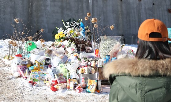8일 경기도 양평군 하이패밀리 안데르센 공원묘원에서 시민들이 양부모의 학대로 생후 16개월 만에 숨진 정인 양을 추모하고 있다. [연합뉴스]