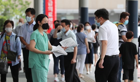 한 전공의가 지난해 9월 1일 서울 종로구 서울대병원 본관 앞에서 정부가 추진하고 있는 의대 정원 확대, 공공의대 설립 반대 내용을 담은 유인물을 시민들에게 배포하고 있다. [뉴스1]