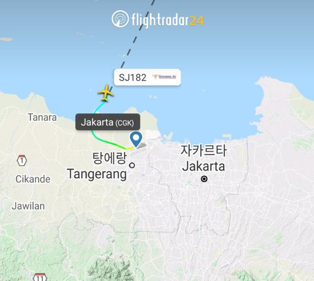 9일(현지시간)자카르타 수카르노하타 공항을 출발해 칼리만탄섬 폰티아낙 공항으로 향하던 스리위자야항공 소속 SJ182편의 모든 통신이 두절됐다고 이날 인도네시아 안타라통신이 보도했다. 해당 항공기에는 승객 56명과 승무원 4명, 조종사 2명 등 62명이 탑승했다. 이중 미성년 승객도 10명에 달한다. 항공정보제공업체 플라이트레이더24에 따르면 해당 항공기는 이날 오후 2시36분 자카르타 공항에서 이륙한 뒤 뒤 4분 만인 오후 2시40분 고도 1만피트를 넘긴 후 레이더에서 사라졌다.