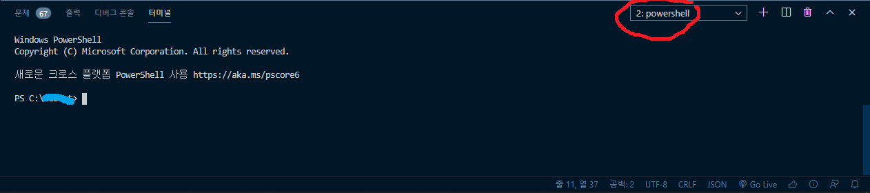 터미널에서 powershell 을 실행하고
