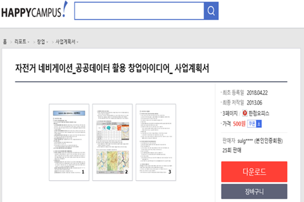 하지만 이 아이디어는 2018년 온라인 과제물 거래사이트 ‘해피캠퍼스’에 올라온 ‘자전거 네비게이션 공공데이터 활용 창업아이디어 사업계획서’ 내용과 유사하다는 의혹이 제기됐다.