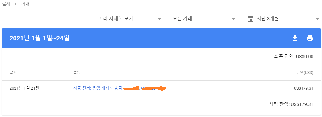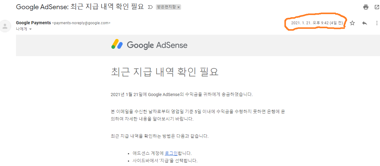 왠만해서는 광고수익이 없다가 오랜만에 송금을 받게 되어서 기분이 좋았다.