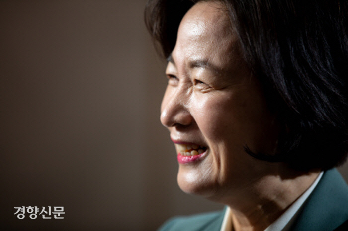 “(한참을 생각하다가) 이 일을 하고 있어도 외롭고, 떠나도 외로운 것 같아요. 사람들은 무소불위 권력을 쥔 검찰에 대해 극도의 공포와 두려움을 갖고 있어요. 검찰개혁의 길이 험난할 수밖에 없죠. 요즘도 제게 꽃바구니를 보내는 분들이 많아요. 그 바구니 하나하나에 검찰개혁을 씩씩하게 해내라는 이름없는 분들의 간절한 마음이 담겨 있다고 생각해요. 그래서 외로워도 결코 외롭다고만 할 수 없는 자리가 됐죠.”