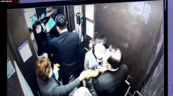 엘리베이터 안에서 몸싸움을 하는데,