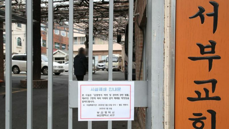 부산 강서구 세계로 교회는 수차례 경찰 고발에도 대면 예배를 강행했다가 12일 예배당 시설 무기한 폐쇄 조치를 받았다.