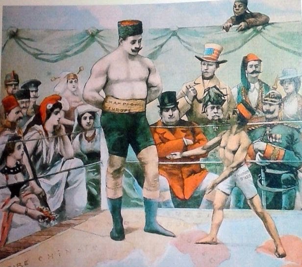 러일전쟁 초기 프랑스 신문 ‘르 프티 파리지앵’에 실린 유명한 만평이 있다. 왜소한 일본인과 덩치가 3배쯤 되는 러시아인이 링에서 붙고 있다. 링 바닥엔 동북아시아 지도가 그려져 있다. 러시아인은 만주와 한반도 북부, 일본 선수는 한반도 남부를 밟고 있다. 관중석 앞줄에는 덩치가 큰 영국인이, 다음 줄엔 프랑스와 독일인이 앉아 있다. 그다음 줄에 미국인이 서 있다. 경기장에 들어오지도 못하고 장막 뒤에서 훔쳐보는 중국인이 처량하다.