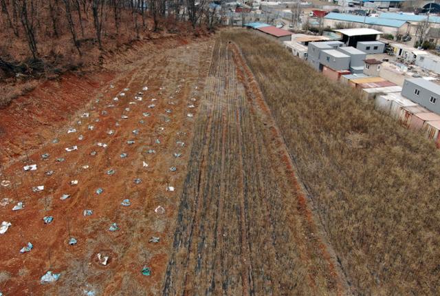 4일 LH 직원들의 땅 투기 의혹이 제기된 경기 시흥시 무지내동 소재 농지에 다양한 묘목이 심겨 있다. 시흥=뉴스1