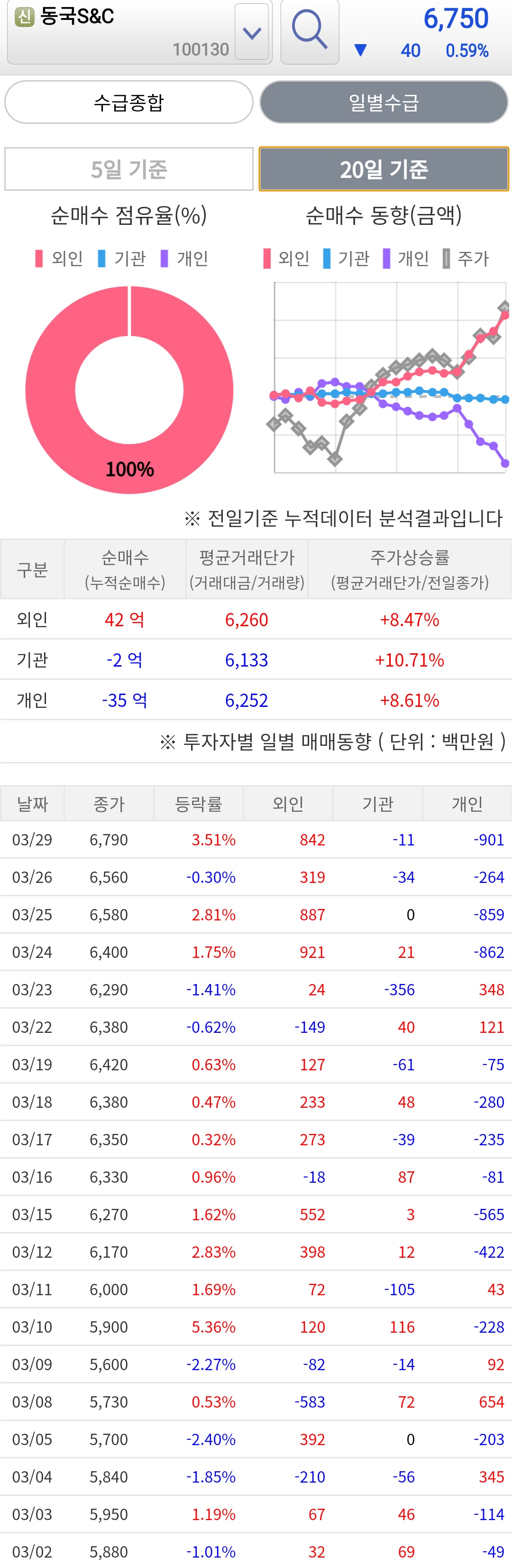 [투자자별일일매매동향] [일별수급 20일기준 - 동국S&C] 외인 매수 따라 주가 움직임 개인 털림 기관 조금 매도 원전도 없어지는 판에 화력만 늘고 있는데, 풍력이라도 띄워야 하지 않나?