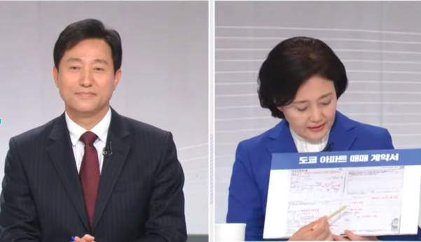 박 후보가 준비된 매매계약서를 공개한 것은 이날 토론에서 오 후보가 '도쿄 영선'이라는 발언을 한 데 따른 것이다. 오 후보는 토론 과정에서 박 후보가 '내곡동 처가 땅 개발' 의혹에 이어 '코이카 봉사활동 청년 자리 빼앗기' 의혹을 제기하자 박 후보를 향해 "자격 미달의 거짓말"이라며 "시중에서 '도쿄 영선' '부동산 투기' '서울대병원 황후 진료' '주택리모델링 3억원 대납' '재벌기업 후원금' 의혹도 제기됐는데 저는 언급하지 않겠다. 다음에 또 토론을 할 텐데 그때는 상호 정책 토론이 됐으면 좋겠다"고만 했다.