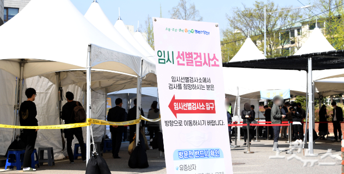 선별검사소에서 시민들이 검사를 받기 위해 대기하고 있다. 황진환 기자
