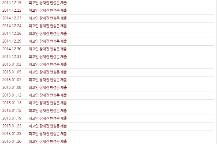 ◇ 김현정> 잠깐만요. 지금 유튜브와 레인보우로 보내드리고 있는 이게 장재진이 반성문 써낸 그 횟수 기록해 놓은 거예요?
