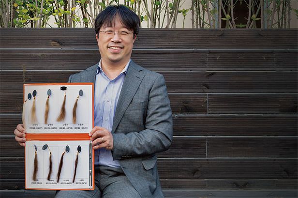 “염색샴푸라고 하면 안 됩니다. 염색이 아니라 발색입니다. 염색은 착색을 시키는 것이고 발색은 없던 색깔이 나오게 하는 것입니다. 개념 자체가 완전히 다릅니다.” 이 교수는 당부의 말로 인터뷰를 시작했다. 이 교수가 개발한 샴푸는 천연성분을 기반으로 한 특허물질이 산소와 반응해 흰머리, 새치머리를 발색하게 만든다. 곤충이 상처를 자가치유할 때 나오는 물질의 브라우닝 현상과 과일의 갈변현상에 착안했다고 한다. 이 교수의 설명이다.