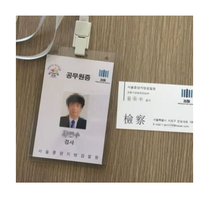 '김민수 검사'를 사칭한 보이스피싱 일당이 사용한 가짜 신분증. 사진 부산경찰청