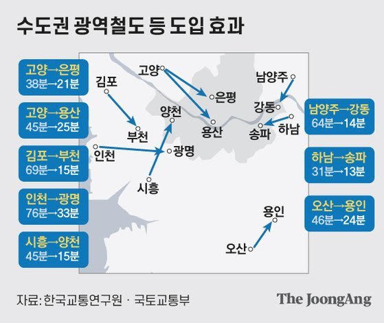수도권 광역철도 등 도입 효과. 그래픽=김은교 kim.eungyo@joongang.co.kr