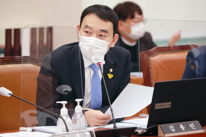 김용민 더불어민주당 의원이 26일 오후 서울 여의도 국회에서 열린 법제사법위원회의 법무부, 대법원, 감사원, 헌법재판소, 법제처 종합감사에서 질의를 하고 있다. 윤창원 기자