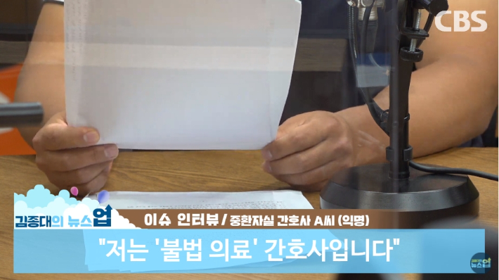 ◆ 간호사 A> 실제로 저는 중환자실에서 일하다 보니 환자들만 있고 보호자들이 없는 공간에서 일을 하다 보니까 더 이제 불법적인 의료행위를 많이 할 수밖에 없는 겁니다.