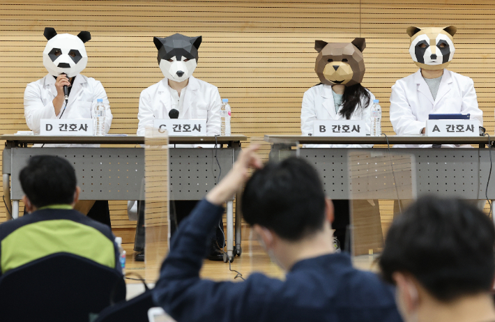 ◇ 김종대> 11년차요. 이제는 중견 간호사시네요. 지난주에 좌담회를 여셨어요. 의사 가운을 입고 동물가면을 쓴 채 참석을 하셨더라고요. 신원노출에 대한 부담에도 불구하고 좌담회에 참석하고 또 이렇게 인터뷰 나서신 이유, 밝혀주시겠습니까?