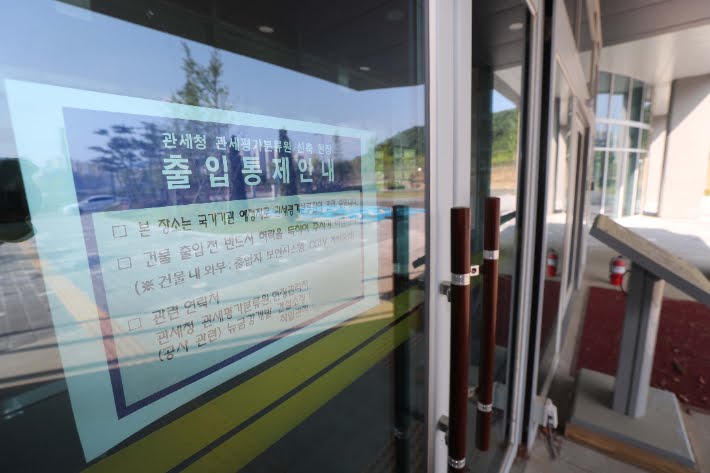 세종시 관세평가분류원 청사에 부착된 출입 통제안내문. 연합뉴스