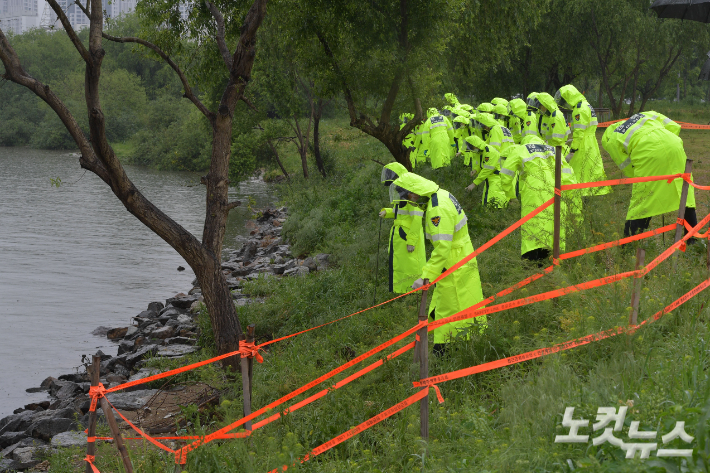 지난 17일 서울 서초구 반포한강공원 수상택시 승강장 인근에서 경찰이 故 손정민씨 친구의 휴대전화 수색 작업을 하고 있다. 박종민 기자