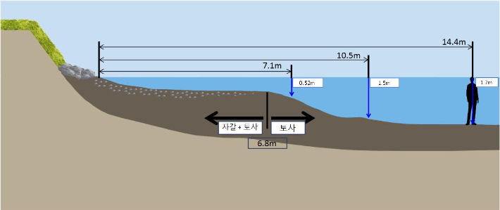 그러면서 "강에서부터 10.5m 들어간 지점의 수심은 1.5m다. 진흙 성분이라고 보면 된다"고 덧붙였다. 경찰이 한강 수위를 현장실사한 결과 강 안으로 7.1m 들어간 지점의 수심은 무릎 높이 정도 되는 0.52m로 낮지만, 10.5m가 지나면 1.5m로 급히 깊어지다가 14.4m 안으로 들어가면 1.7m에 이른다.