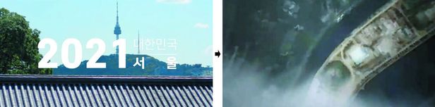 지난 30일 개막한‘P4G 서울 정상회의’오프닝 영상. 개최지인 서울을 소개하는 부분에서 남산, 한강 등 랜드마크들(왼쪽 사진)에 이어 대동강 능라도 위성사진(오른쪽 사진)이 등장한다. 이어 평양과 평안남도 일대가 화면을 채웠다. 서울이 아니라 평양 상공의 위성사진을 오프닝 영상에 쓴 것이다. 청와대 유튜브 계정에 있던 이 영상은 31일 삭제된 뒤 수정된 영상으로 대체됐다. /청와대 유튜브 캡처