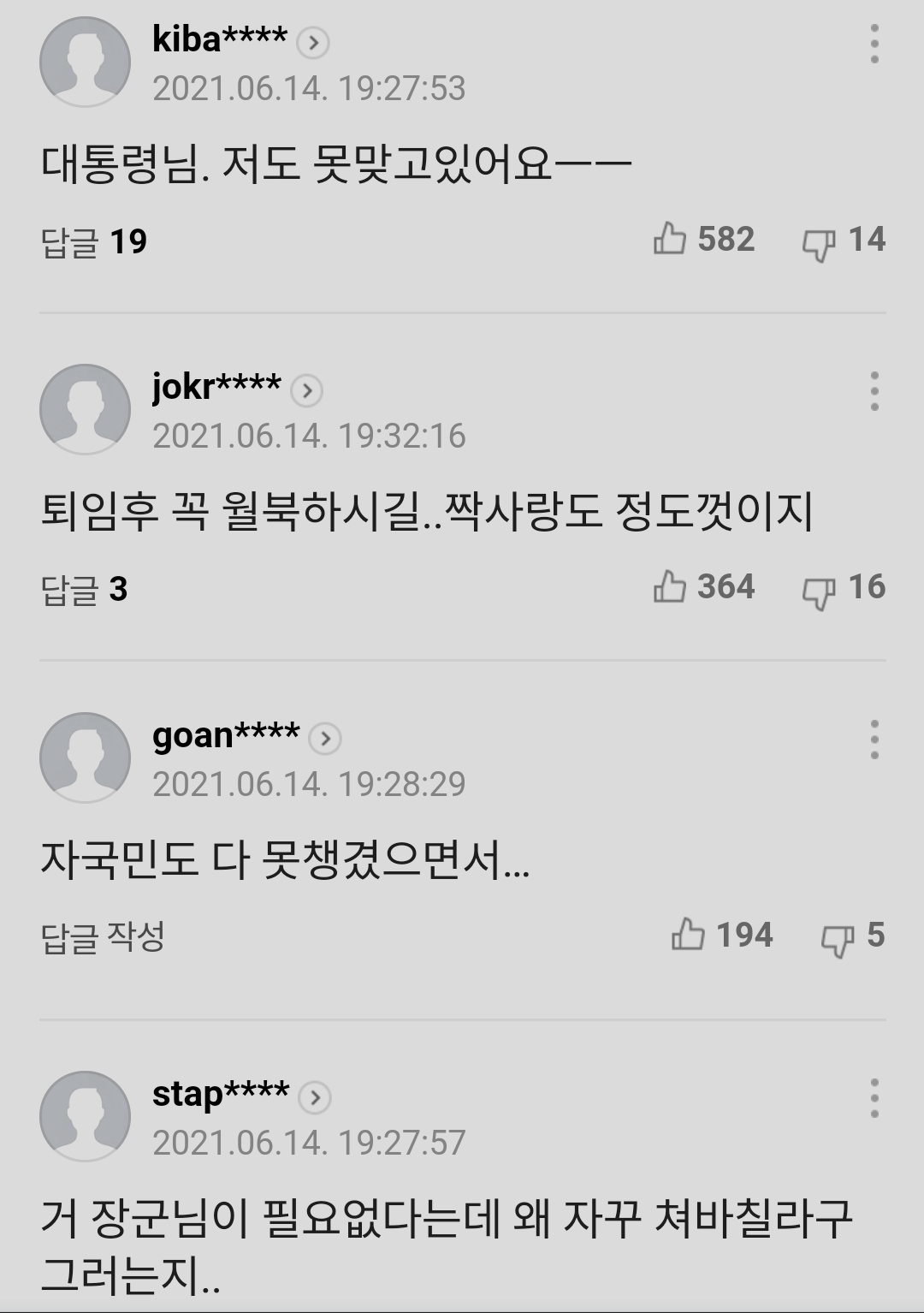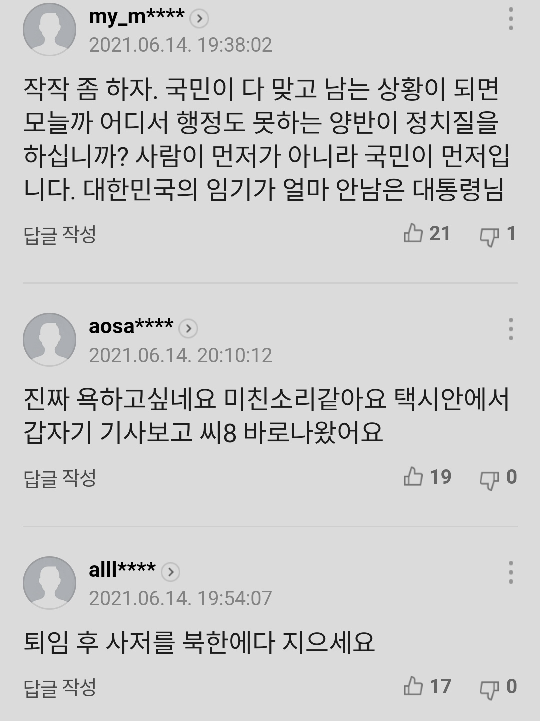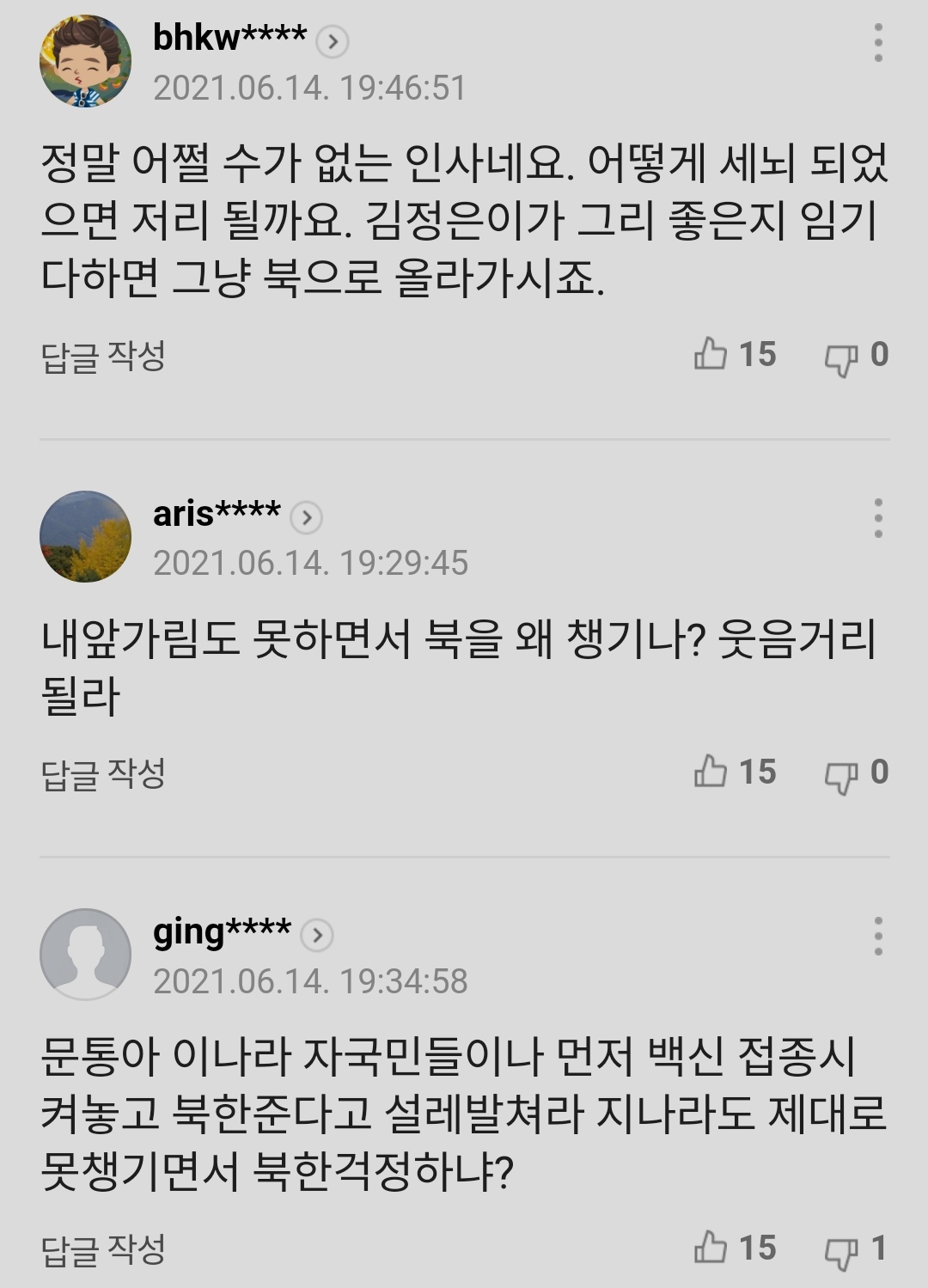문대통령 "北 동의 시 백신공급 협력 적극 추진" 댓글이 더 웃겨 동북아 방역보건협력체 이어 백신공급 제안 美, 대북 인도주의적 협력 적극 지지 오스트리아 대통령 北 신호 있다면 도움