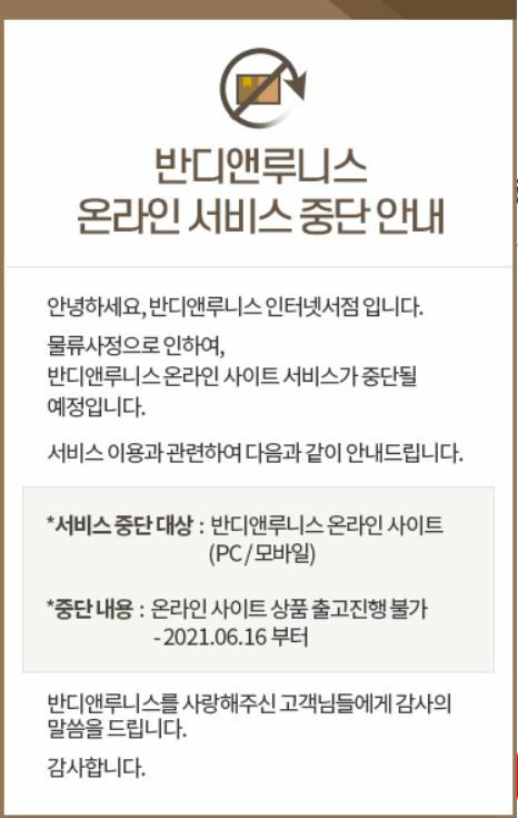 반디앤루니스도 홈페이지를 통해 온라인 서비스 중단을 안내했다. 반디앤루니스 측은 "물류센터 사정으로 인해 온라인 사이트 서비스가 중단될 예정"이라며 "오늘부터 PC와 모바일에서 상품 출고 진행이 불가능하다"고 전했다.