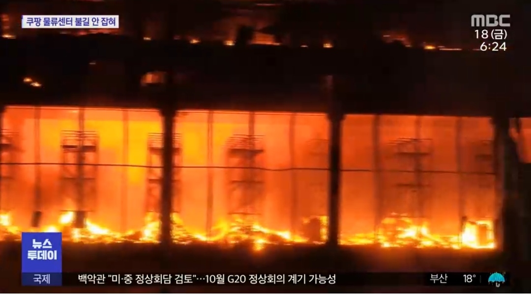 물류센터 특성상 내부에 택배 포장에 사용되는 종이 박스와 비닐 같은, 잘 타는 물건들이 많아 진화 작업에 어려움을 겪고 있습니다.