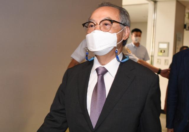 강제추행치상 혐의로 기소된 오거돈 전 부산시장이 21일 오전 2차 결심공판에 출석하기 위해 부산 연제구 부산지방법원 법정으로 들어가고 있다. 연합뉴스