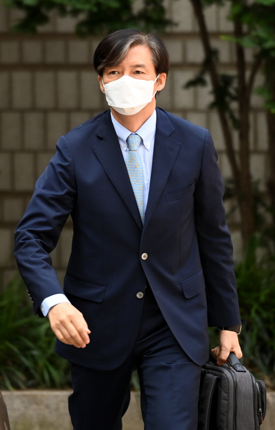 자녀 입시 비리 등의 혐의로 기소된 조국 전 법무부 장관이 25일 오전 재판을 받기 위해 서울 서초구 서울중앙지방법원 건물로 향하고 있다. 곽성호 기자