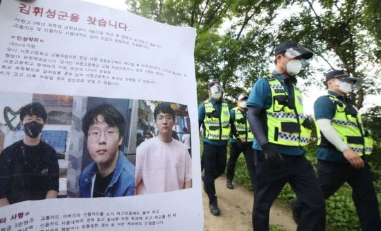27일 오후 경기도 성남시 율동공원 일대에서 경찰이 지난 22일 하교 후 엿새째 행적이 묘연한 분당 서현고 김휘성 군 수색을 위해 이동하고 있다. [이미지출처=연합뉴스]
