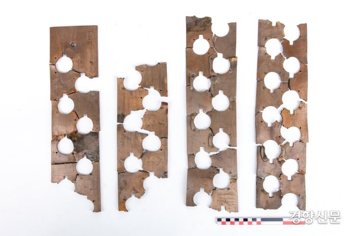 자동 물시계 주전(籌箭)으로 보이는 동판(銅板)과 구슬방출기구. 문화재청 제공
