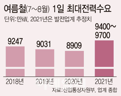 수출 호조로 인한 공장 가동 증가와 불볕더위 등으로 올여름 전력수요가 역대 최고치를 넘어설 것이란 전망에 정부에 비상이 걸렸다. 정부는 폐쇄했던 석탄화력발전소까지 재가동해 전력수요