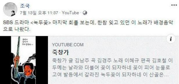 윤석열에 화난 조국, 2년 만에 다시 ‘죽창가’ 올렸다