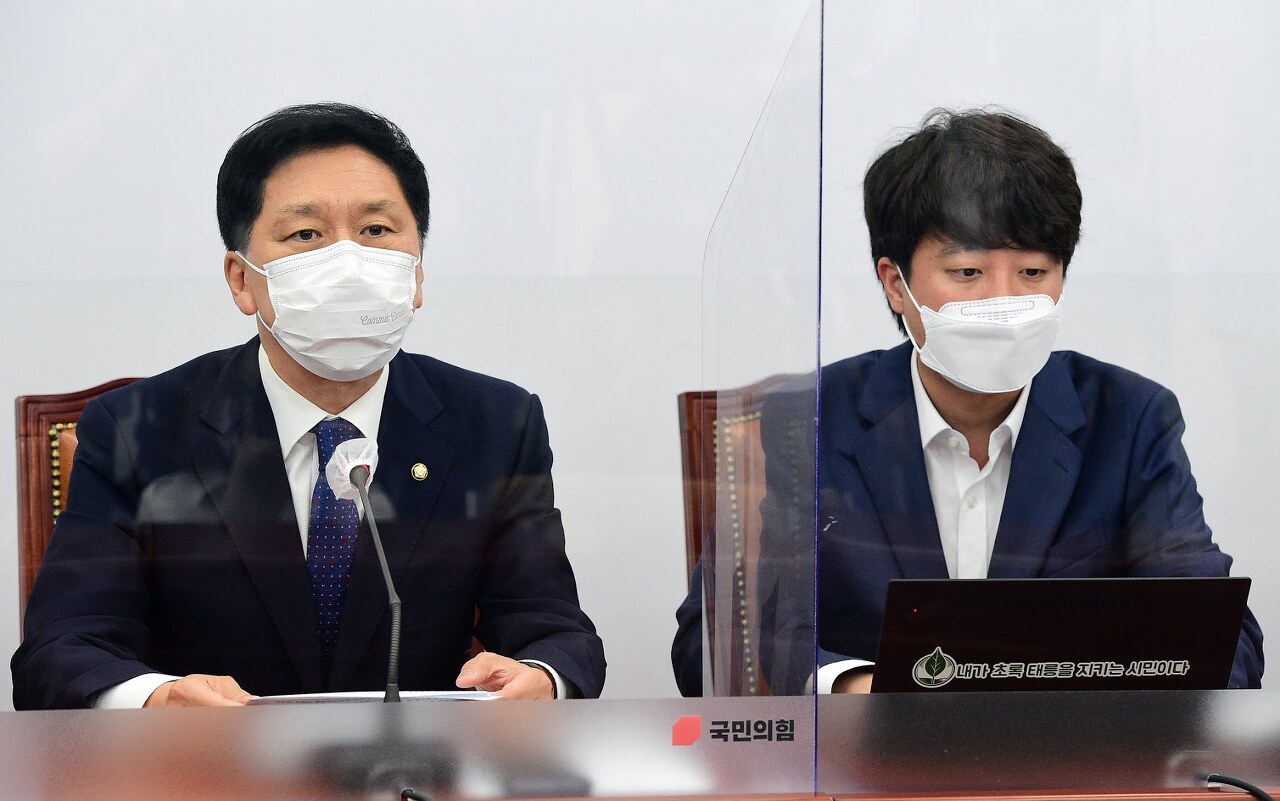 김기현 국민의힘 원내대표(왼쪽)가 1일 국회에서 열린 최고위원회의에서 발언하고 있다. 연합뉴스