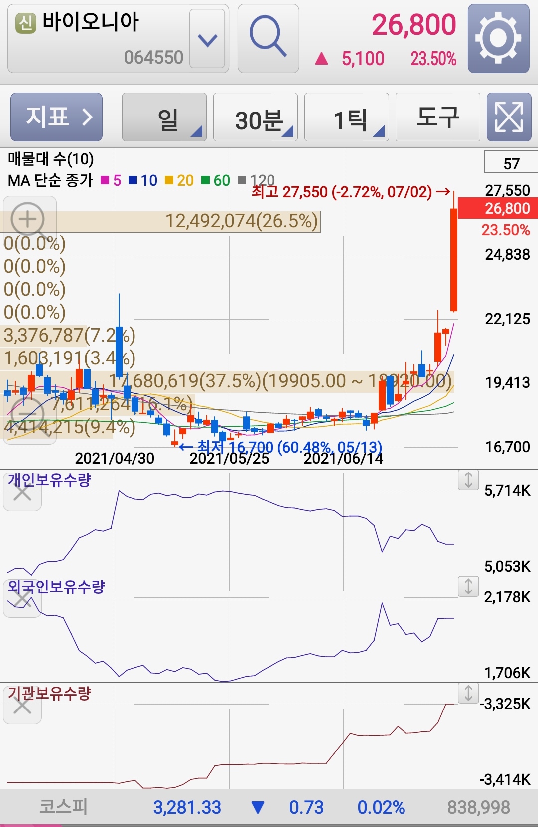 2021년 3월 전년동기 대비 연결기준 매출액은 295.7% 증가, 영업이익 흑자전환, 당기순이익 흑자전환. 바이오틱스 사업 확대와, 코로나19 관련 시약 및 진단키드 판매로 전년동기 대비 외형이 크게 확대됨. 매출 확대로 영업이익 흑자 전환함. 코로나 진단 시약 및 키트는 세계 60여개국에 판매되었고, 코로나와 독감의 동시 유행에 대비하기 위한 동시 진단 키트를 개발하여 식약처 수출 허가 및 유럽판매인증을 획득함.